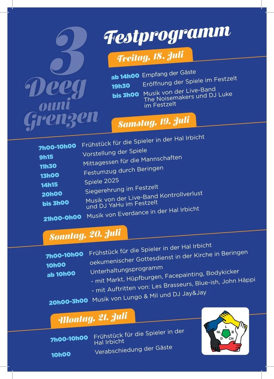 Die großen internationale Spielen sind 21 Jahre nach 2004 endlich wieder in Beringen Luxemburg. Zusätzlich zum großen Fest feiert unser Lokalverein ebenfalls 50jähriges Bestehen, seid also gespannt und besucht uns vom 18.-21. Juli 2025 in Beringen um mit uns ein unvergessliches Wochenende zu erleben.